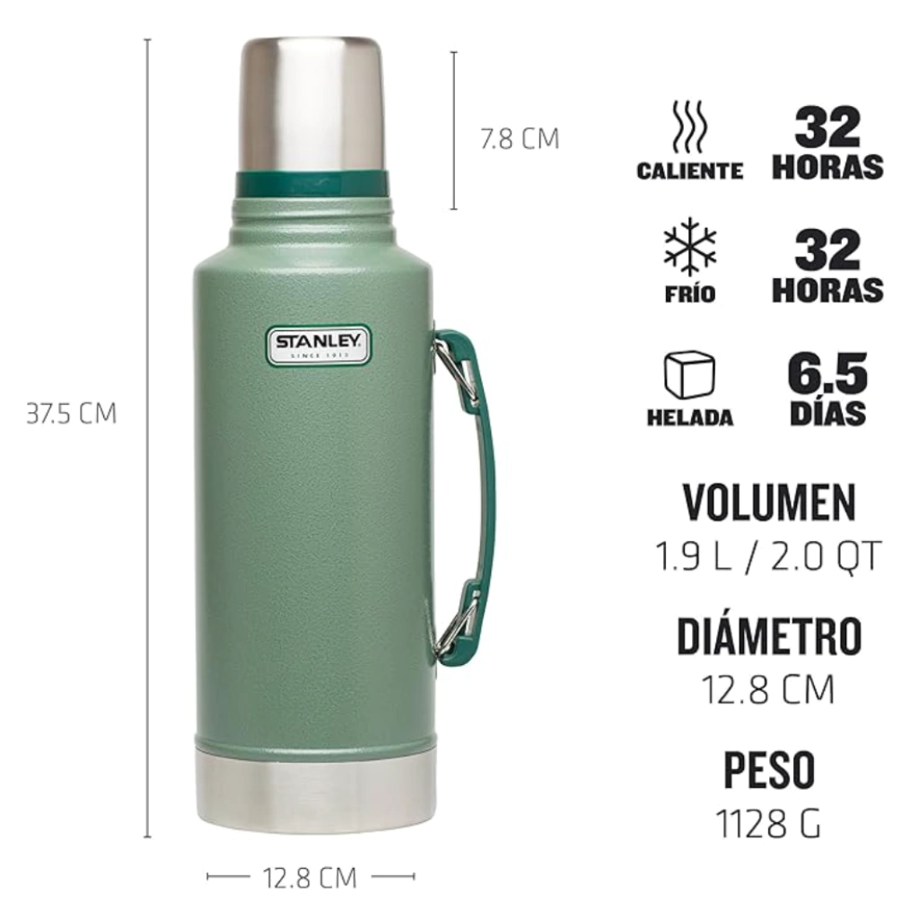 La Stanley Classic es tu compañera ideal para mantener tus bebidas calientes o frías hasta por 32 horas gracias a su aislamiento al vacío de doble pared. Su diseño robusto y su asa plegable la hacen fácil de transportar y perfecta para el camping, la ruta o el trabajo.